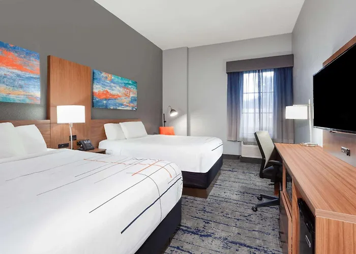 Located a 10-minute ride from Roadside America Gallery, the 3-star La Quinta By Wyndham Hillsboro Hotel offers spacious rooms a 3.1 km from Hill County Courthouse. Guests have access to a swimming pool, a fitness room and Wi-Fi throughout the venue.